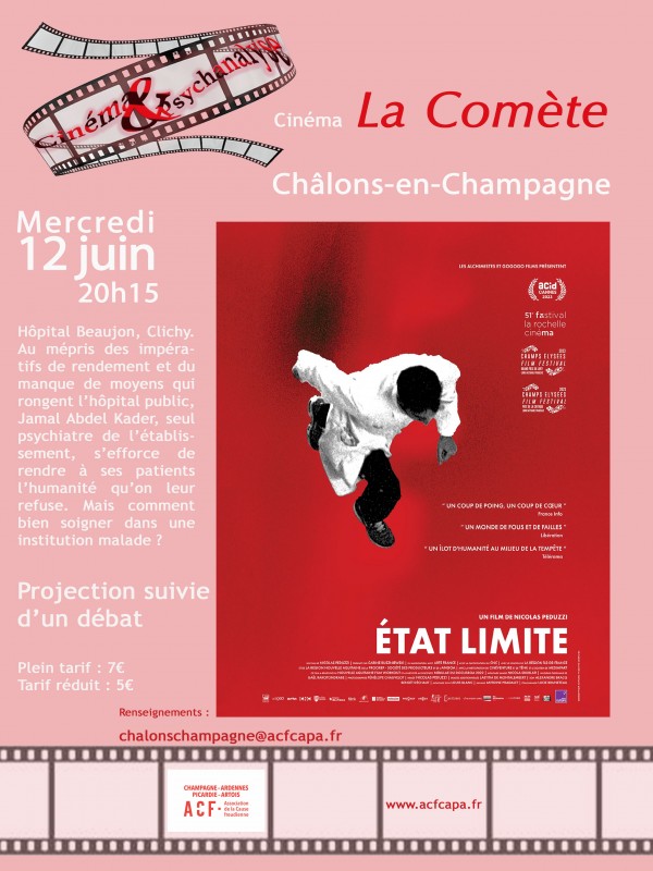 La commission Cinéma et Psychanalyse de Châlons-en-Champagne propose un débat suite à la diffusion du fim documentaire "Etat limite" de Nicolas Peduzzi