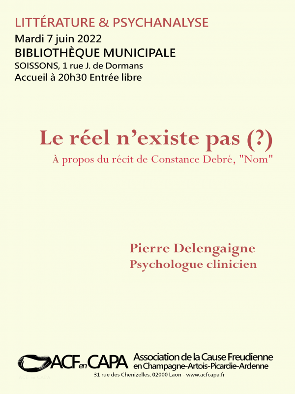 C’est la thèse de Constance Debré : « Comme le réel n’existe pas, on essaye de l’attraper par des représentations, par des idées. On le fabrique à partir de la rêverie, à partir d’un réel idéal en quelque sorte. Et on essaye ensuite de la tordre ou de tordre le rapport entre le jeu et le réel pour le faire coïncider à cette rêverie ou à cet idéal. » [1] Cet énoncé : « le réel n’existe pas » ne peut qu’intriguer quelqu’un qui oriente sa pratique à partir de la théorie lacanienne. C’est strictement l’inverse de la proposition de Lacan, l’existence c’est du réel. Sauf qu’à y regarder de plus près, le réel debrésien correspond plutôt à ce que nous nous faisons comme idée de la réalité. Ce que dénonce l’auteur de « Nom » c’est plutôt l’univers des semblants. C'est cette confusion entre les semblants et le réel que nous examinerons au travers du dernier récit de cet auteur.