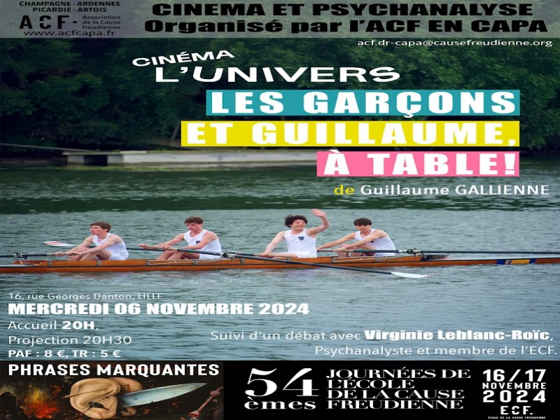 L’énoncé Les garçons et Guillaume, à table ! extrait de sa propre analyse portera sa marque et son poids dans les affres de la vie du comédien réalisateur. Désiré comme fille par sa mère, il s’emploiera, comme nous l’a proposé la psychanalyste, à occuper cette place d’exception pour sa mère au regard de ses frères et à vérifier ce fantasme maternel, à le rendre vrai par cette identification au féminin. Pourtant malgré les efforts du fils pour venir suturer le manque maternel, la tristesse chez elle subsiste, ce qui est une véritable chance pour l’enfant ! N’incarnant pas complètement l’objet qui manque à sa mère, Guillaume continue à rater et à s’interroger, comme dans ces scènes où il formule ses rectifications subjectives, ses insights : « Alors c’est ça !!! » Et en cela, il n’est pas complètement aliéné aux signifiants ; Guillaume est un homme qui aime les femmes! En plus du ratage à saturer le manque maternel, il y est question de son désir autant que de sa jouissance.
