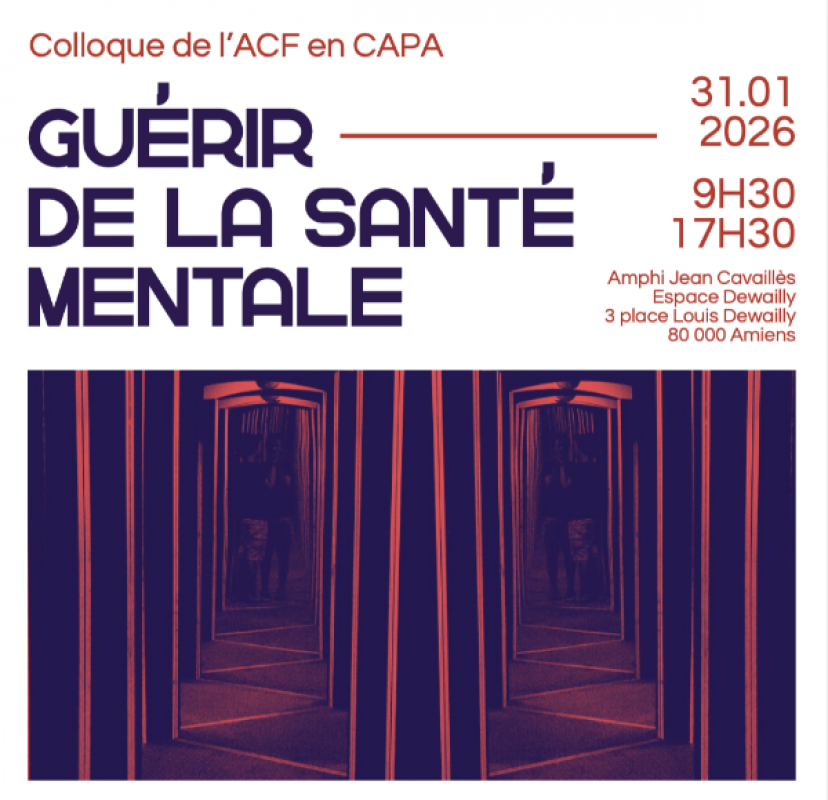 Le prochain colloque de l'ACF en CAPA se tiendra à Amiens le 31 janvier 2026 en présence de Philippe De Georges, psychanalyste, membre de l'ECF.