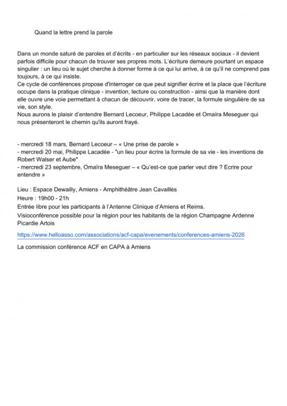 Entrée libre pour les participants à l’Antenne Clinique d’Amiens et Reims.